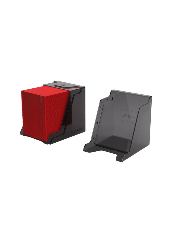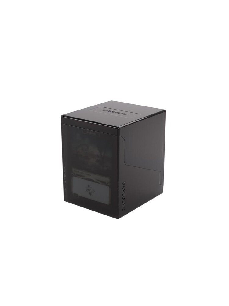 The Bastion 100+ XL is a very compact and rock-solid deck box to safely protect 100+ double-sleeved cards in Thick Inner Sleeves. Due to translucent materials and smart positioning of the closing flaps, the top or Commander card is fully visible from the outside without opening the box. The innovative secure click-lock mechanism protects your deck while still allowing easy access.