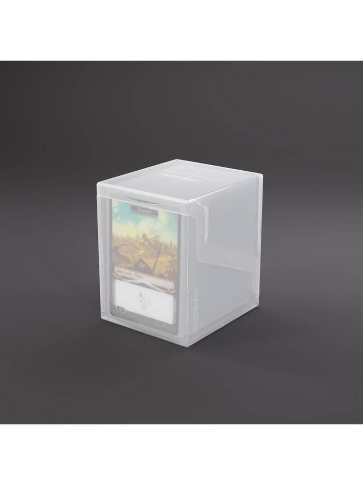 The Bastion 100+ XL is a very compact and rock-solid deck box to safely protect 100+ double-sleeved cards in Thick Inner Sleeves. Due to translucent materials and smart positioning of the closing flaps, the top or Commander card is fully visible from the outside without opening the box. The innovative secure click-lock mechanism protects your deck while still allowing easy access.