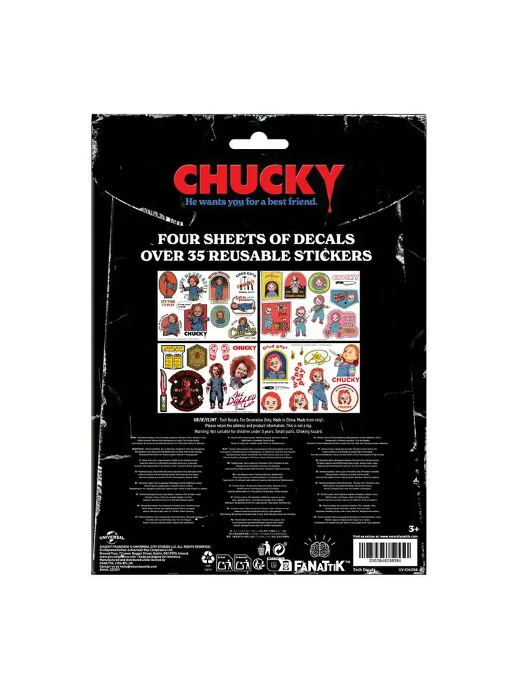Give your gear a killer new look with these officially licensed Chucky Tech Decals! Perfect for horror fans, these reusable vinyl stickers let you bring Child’s Play style to your laptops, consoles, phones, water bottles, notebooks, and more.