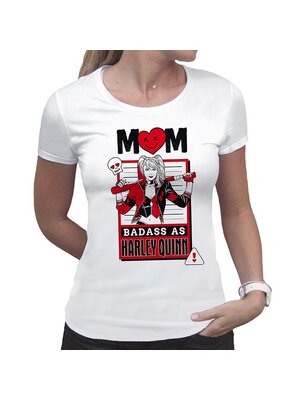 DC Comics Tshirt Woman SS White 'Mom Badass As Harley Quinn' Extra Large