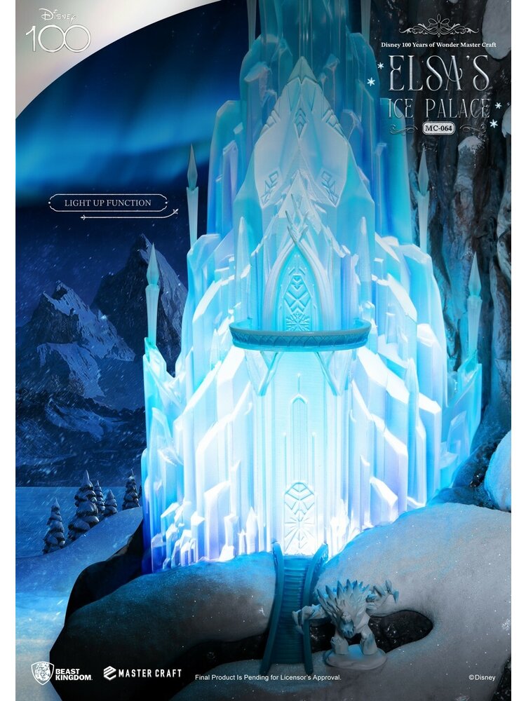 _x000D_Continuing the 100th anniversary celebration of Disney's Beast Kingdom 'Entertainment Experience Brand,' a high-end 'Master Craft' release for fans of the beloved Frozen series is now available. Introducing the limited edition collectible statue, 'Elsa's Ice Palace.' The statue beautifully captures the moment when Elsa unleashes her long-suppressed magic, creating a wondrous Ice Palace. Meticulously crafted with exceptional artistry and hand-painted to perfection, the Master Craft 'Elsa's Ice Palace' faithfully recreates the grandeur and intricate patterns of the palace, along with the weathered cliffs and falling snow that adorn its surroundings. Adding to the enchantment, the statue comes with a Guardian snow creature, protecting the Ice Palace from intruders.