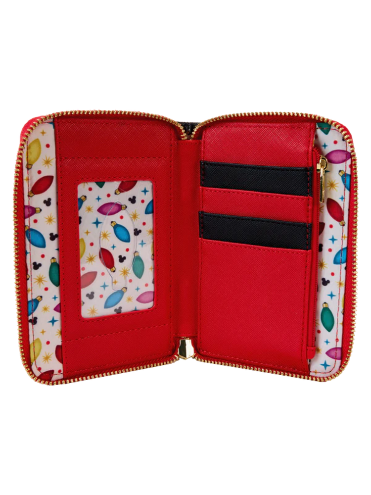 Hip-hip-hooray! Festive lights coming your way! Keep all the holiday lights close wherever you go with our Disney’s Mickey Mouse and Friends zip-around wallet. An elegant black background makes th