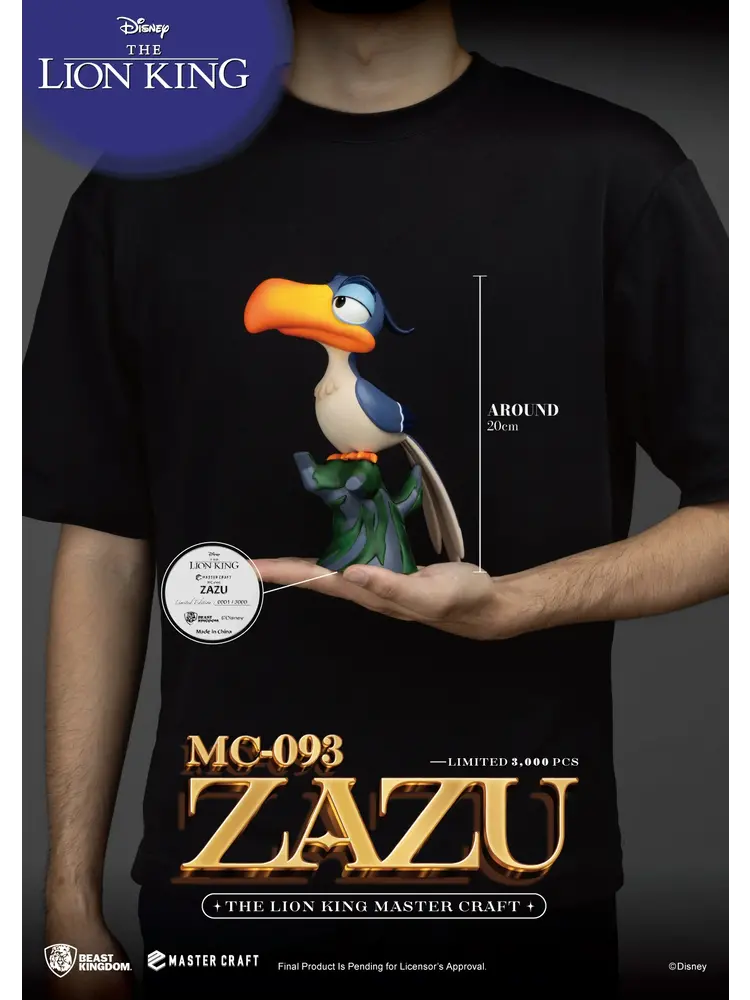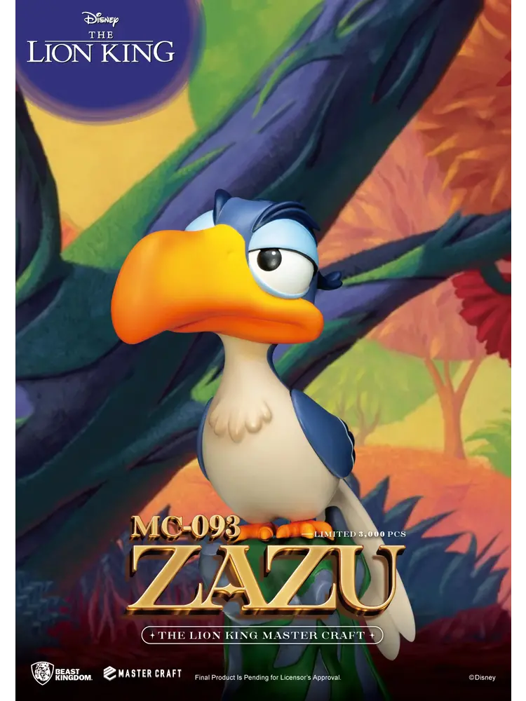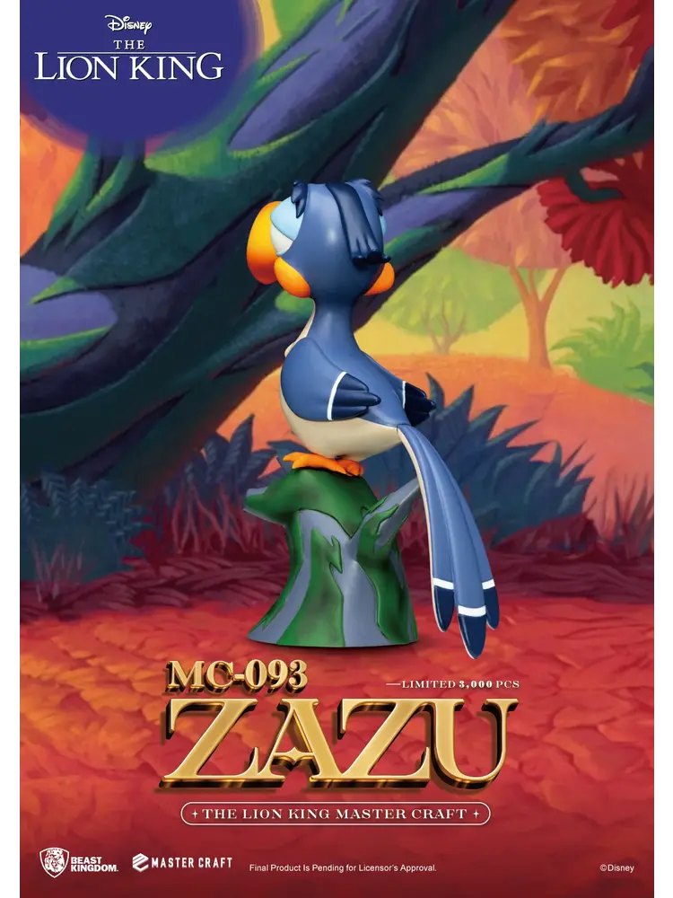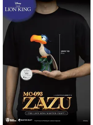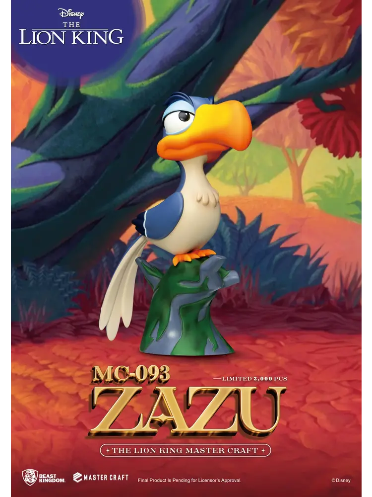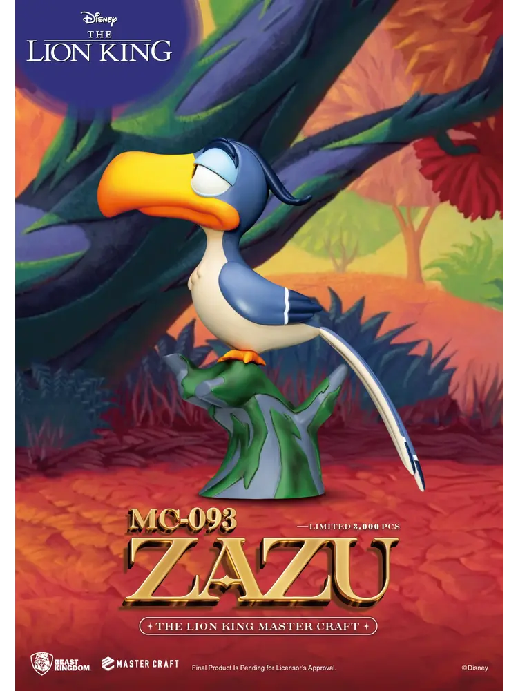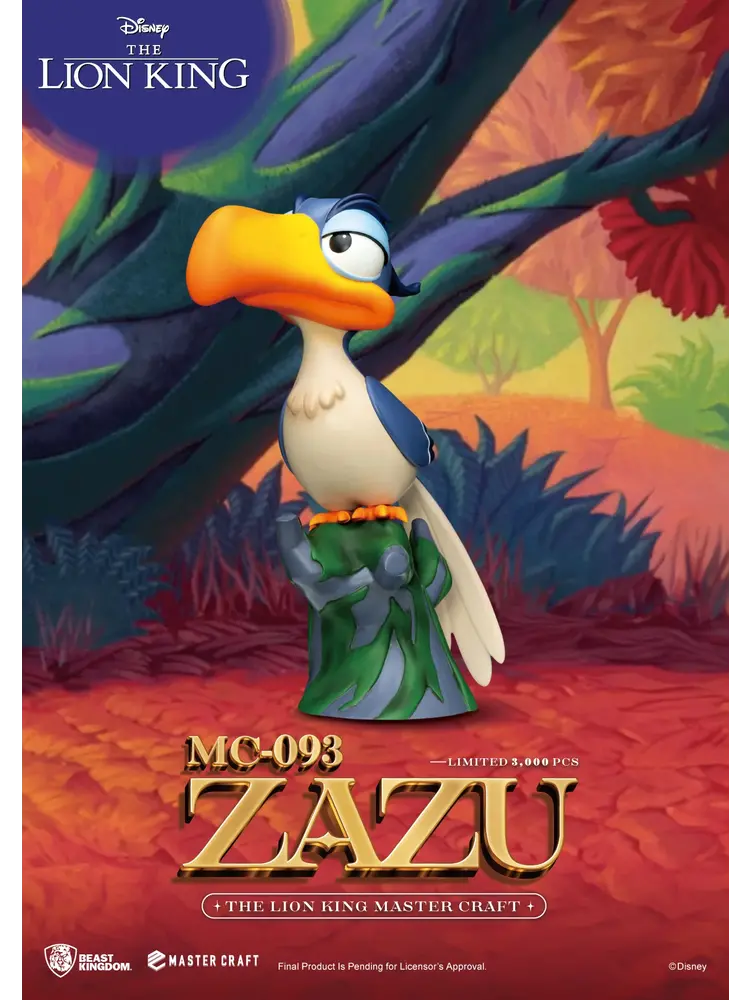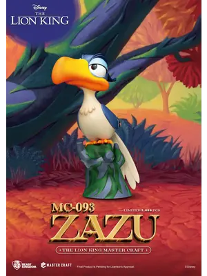 Remember Zazu, the advisor and sidekick to Mufasa and Simba in the classic Disney animation ""The Lion King""? Beast Kingdom has finely recreated this unforgettable character in their Master Craft series. ""MC-093 The Lion King Master Craft Zazu"" emphasizes Zazu's proud and honorable expression. The statue features a multi-layered paint job highlighting his large beak and vibrant feathers. ""MC-093 The Lion King Master Craft Zazu""is perched on a tree stump just like in the animation, perfectly complementing the ""MC-012 The Lion King Master Craft Simba"" statue.