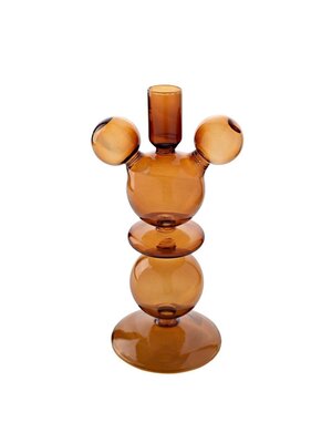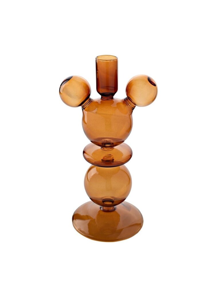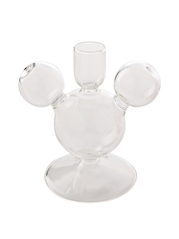 Made from glass with a shiny finish. The design stands out due to both holders having the iconic shape of Mickey Mouse's head.