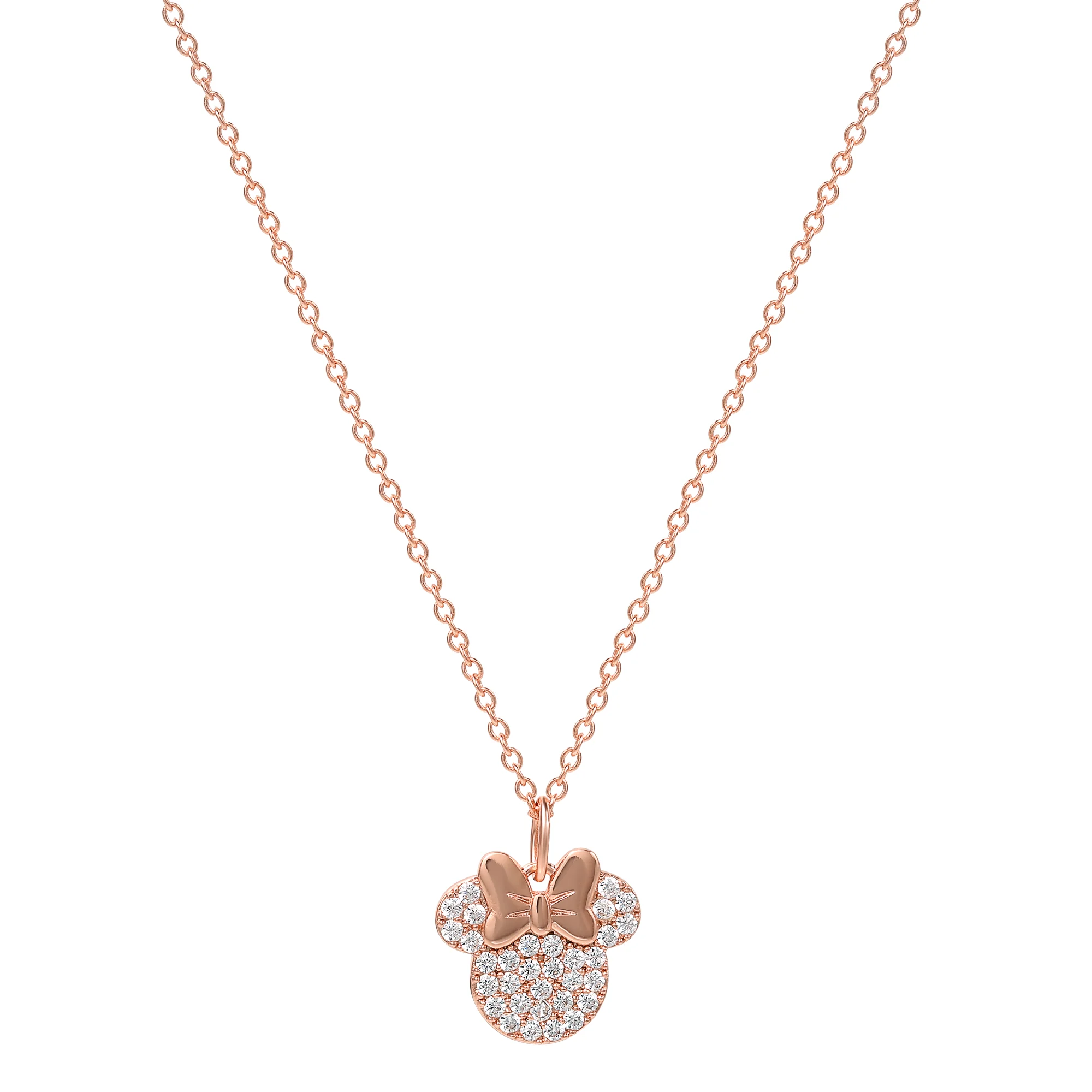 Beoordeel Disney Minnie Mouse Rose Gold Necklace in Silver Brass Plated