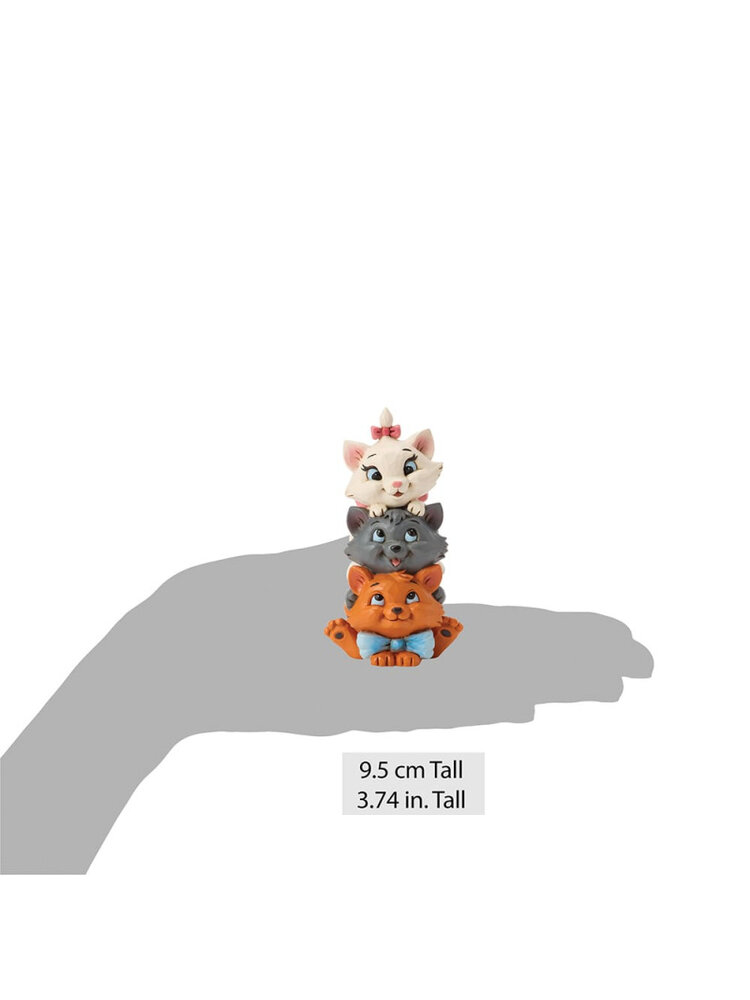 This charming Jim Shore design features the Aristocats kittens playfully stacked together. Toulouse forms the base as Berlioz and Marie balance on top, with bright smiles. The spoiled trio is about to learn some big lessons after being kidnapped|