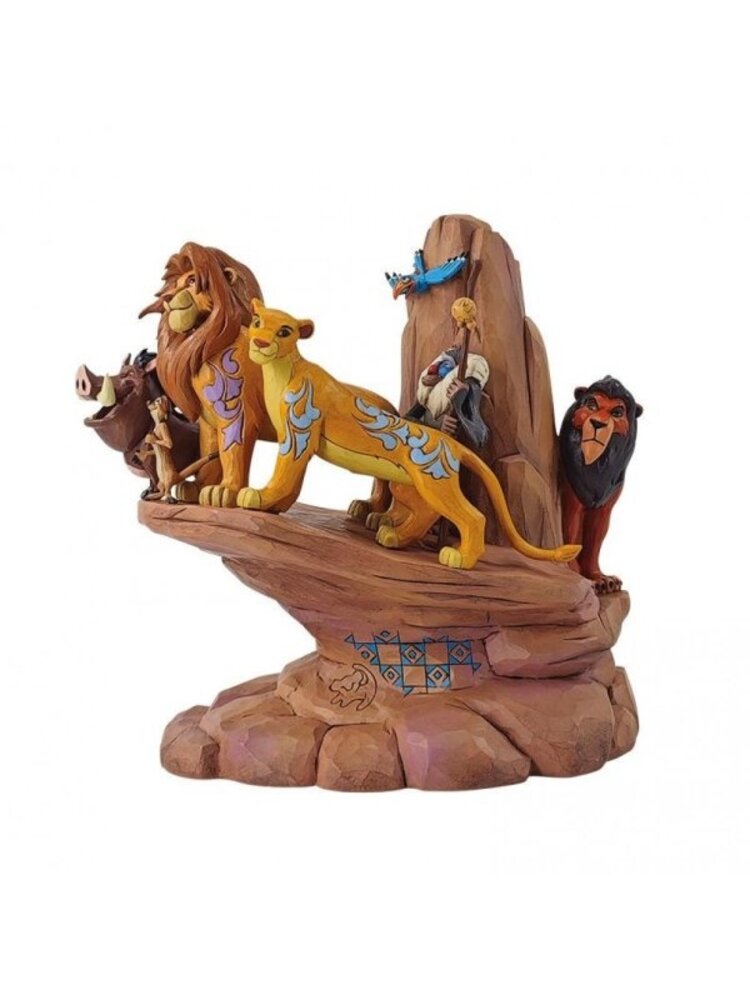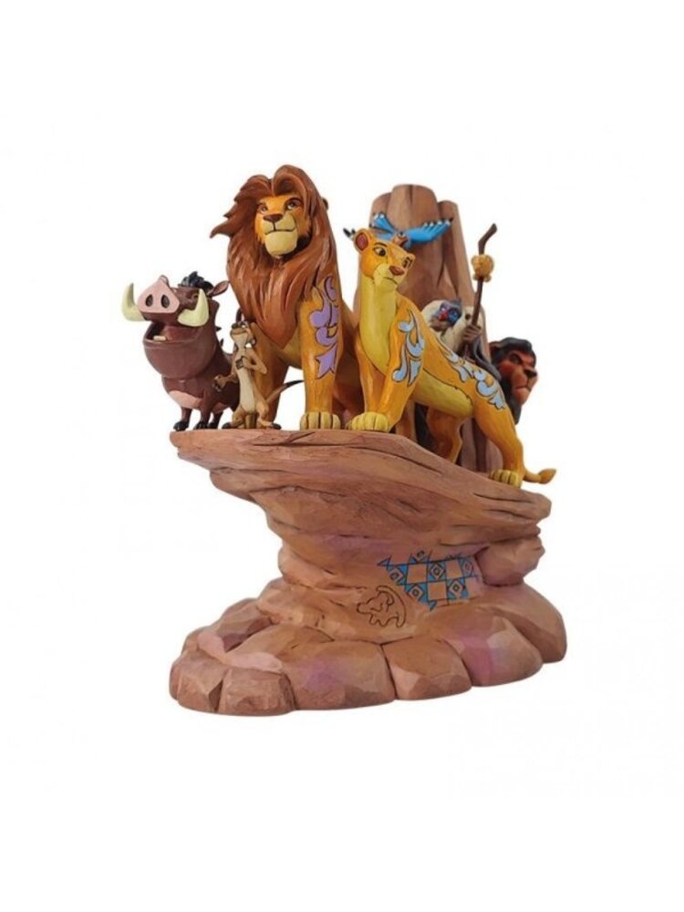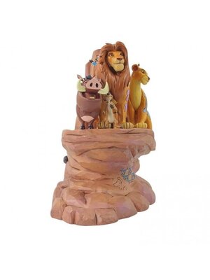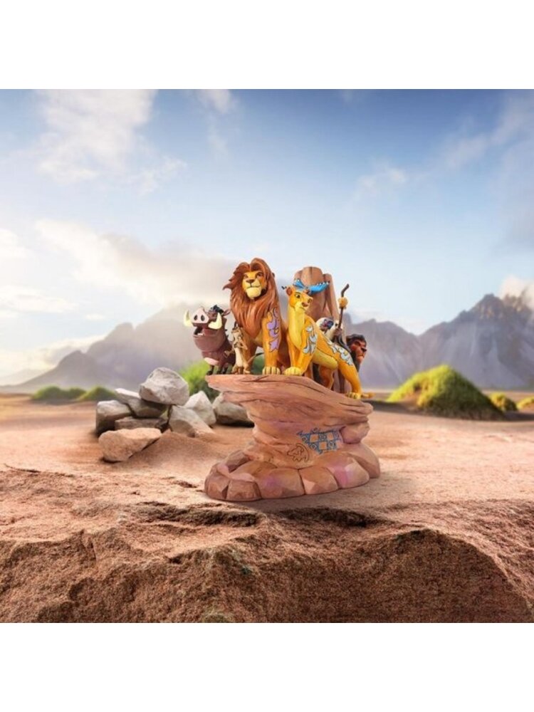 _x000D_This incredible creation by Jim Shore celebrates the 30th anniversary of Disney's beloved 1994 film, The Lion King. With patchwork patterning and Rafiki's Simba drawing, Pride Rock looks stately as the main characters stand upon the stage. Minimum order 1. Comes in fully branded packaging.