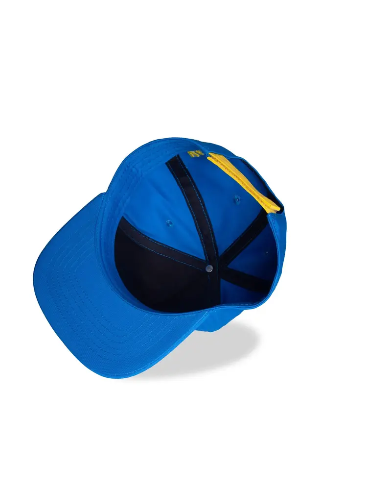 With his signature charming smile, this blue Vault Boy snapback cap adds a touch of retro gaming nostalgia to your style. This cap's design perfectly captures his classic look, while adding a special touch with the felt patch with embroidery of his face prominently on the front.