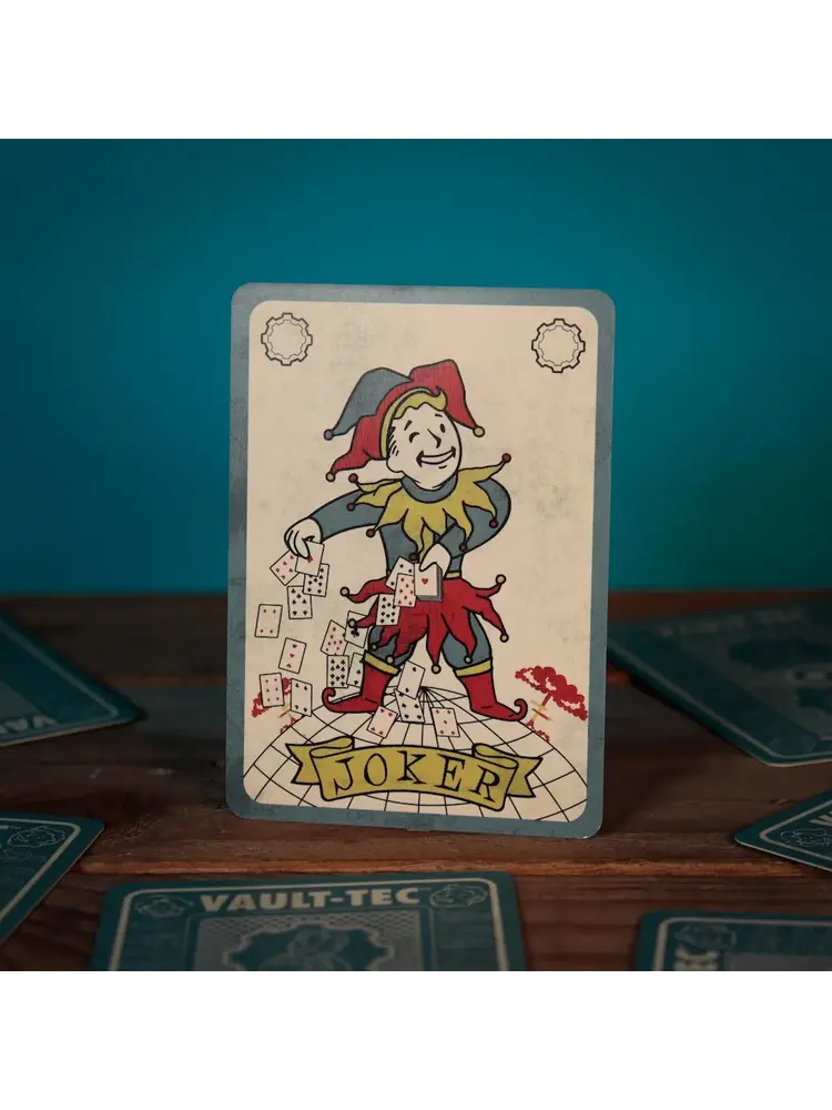 Featuring the iconic Vault-Tec logo on the reverse, each suit includes a uniquely crafted Vault Boy Ace, along with Fallout inspired Jack, Queen, and King cards. The two jokers are also designed in Vault Boy style, giving the deck a premium finish.