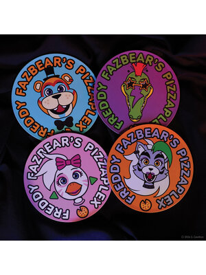 Featuring Glamrock Freddy, Glamrock Chica, Montgomery Gator and Roxanne Wolf, this set of four officially licensed Five Nights at Freddy's coasters are 89mm in diameter and come with a non-slip cork base printed with the game logo.