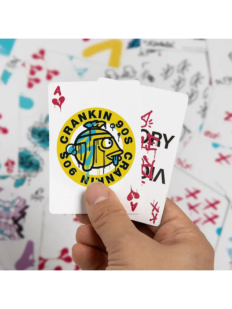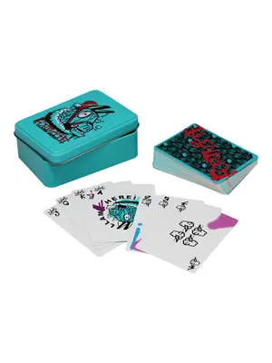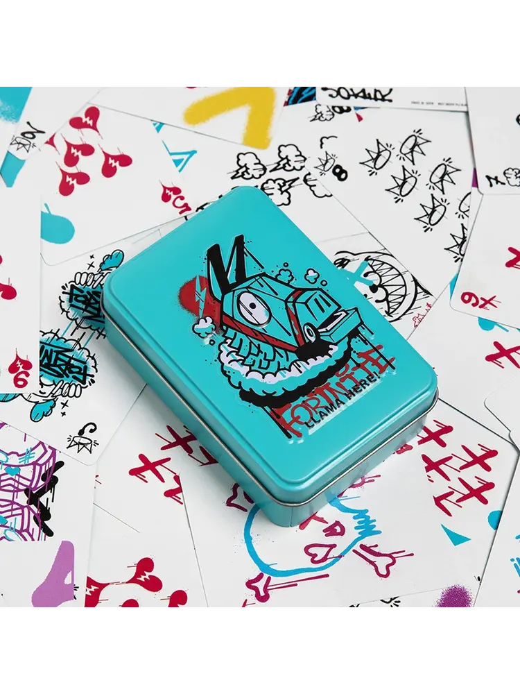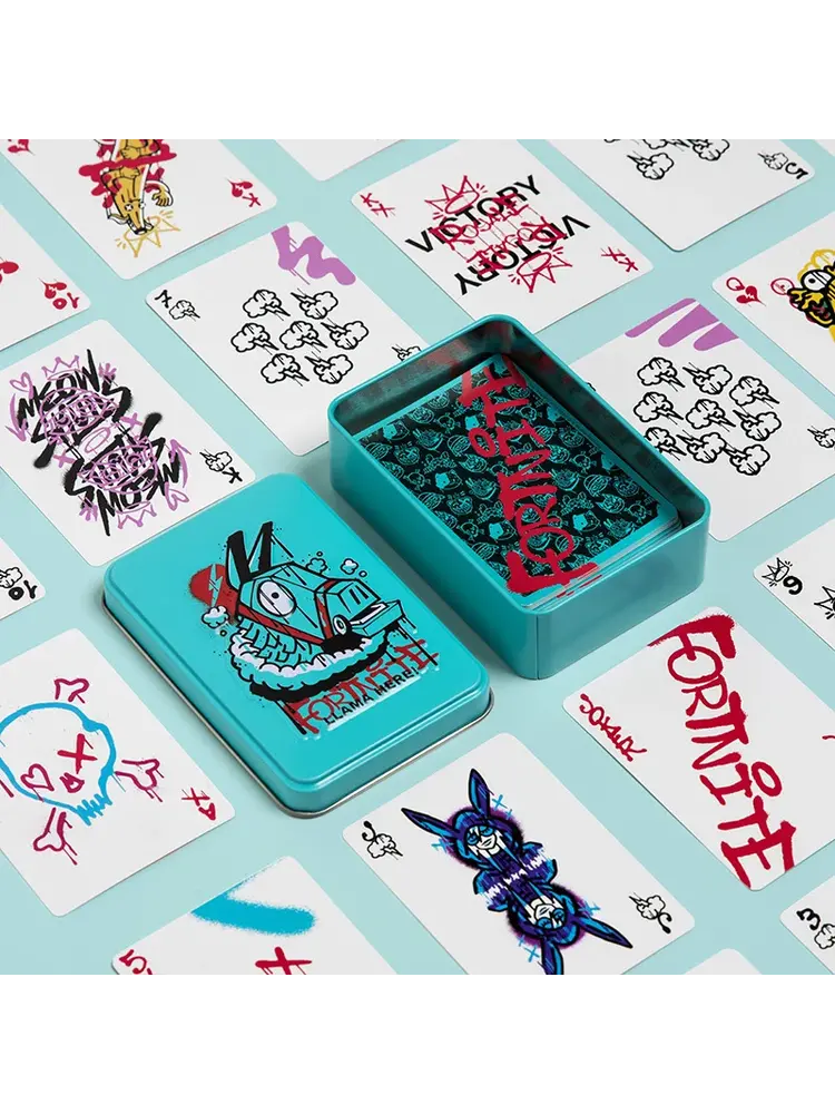 Level up your game nights with these Fortnite Playing Cards. Inside the matching storage tin, you'll find a standard deck of playing cards featuring vibrant, graffiti-style designs inspired by the world of Fortnite. Each card bursts with colour and epic artwork, offering you a Battle Royale worthy experience with every turn of a card. The Fortnite Playing Cards will bring the game universe to every shuffle for your next game of cards.