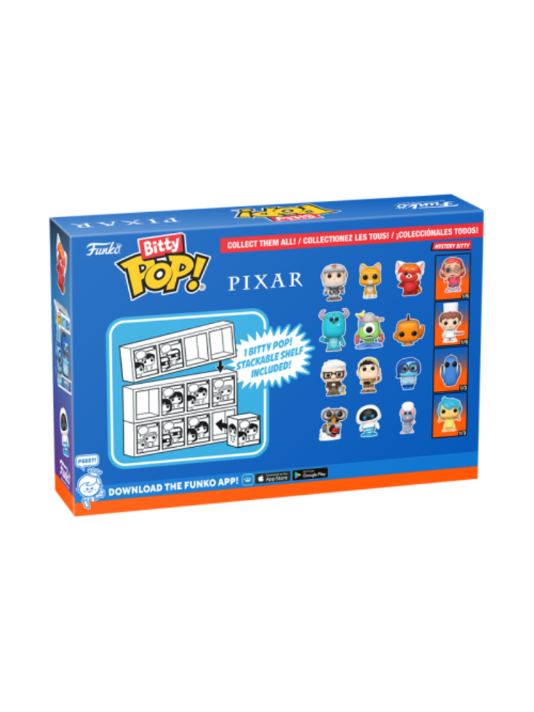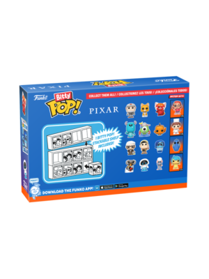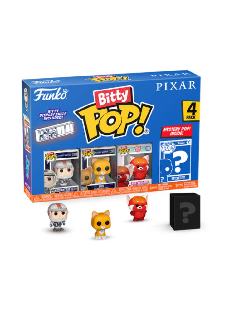 Your favourite Pops! have been shrunk into Bitty Pops! Expand your Disney Pixar collection with this assortment of Bitty Pop! figures featuring your most beloved animated characters! This 4-pack includes Bitty Pop! Buzz Lightyear (XL-01), Bitty Pop! Sox, Bitty Pop! Izzy Hawthorne, and a mystery Bitty Pop! figure. The possible mystery Bitty Pops! are Hyper Rare (1/6) Russell, Hyper Rare (1/6) Zurg, Rare (1/3) Celia, and Rare (1/3) WALL-E with Fire Extinguisher. Bitty Pops! are packaged in hard acrylic cases with detachable bottom lids. Detachable bottom lids double as acrylic bases, to which the Bitty Pop! figures are adhered. Sort and arrange your Bitty Pops! with the included display case! Acrylic display cases are stackable and hold four Bitty Pop! figures each. Vinyl figures are approximately 2.2 cm tall. Four figures per single package purchase. Warning: Choking Hazard. Collectibles are small. Not for children under the age of 3 years old. Item selection is random, as each piece is in blind packaging. We cannot accept requests for specific items. You may receive duplicate figures.