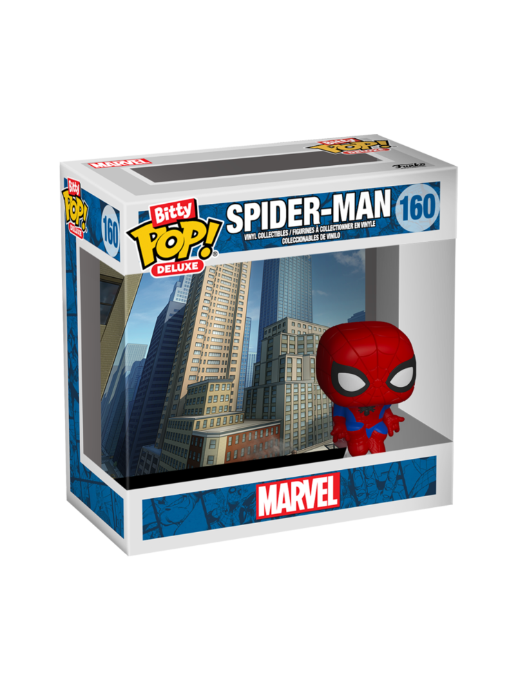 The Bitty Pop Deluxe - Spider-Man (Cityscape) is a fascinating figurine that captures the heroic spirit of Spider-Man in an adorable, stylish version. Perfect for collectors and Marvel fans.