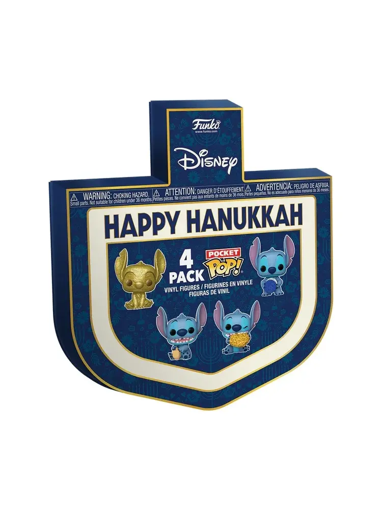 _x000D_Put a new spin on your favorite holiday game with the Lilo & Stitch Pocket Pop! Dreidel Box! This 4-pack features Pocket Pop! Stitch with an assortment of themed details, just in time for Hanukkah! There’s Pocket Pop! Stitch (Gold), Pocket Pop! Stitch with Gift, Pocket Pop! Stitch with Dreidel, and Pocket Pop! Stitch with Latke. All four Pocket Pops! come in a festive, dreidel-shaped box. This Dreidel Box set will make the perfect gift for loved ones—or for yourself! Make room for this adorable collectible in your Disney collection! Vinyl figures are approximately 4.9 cm tall.