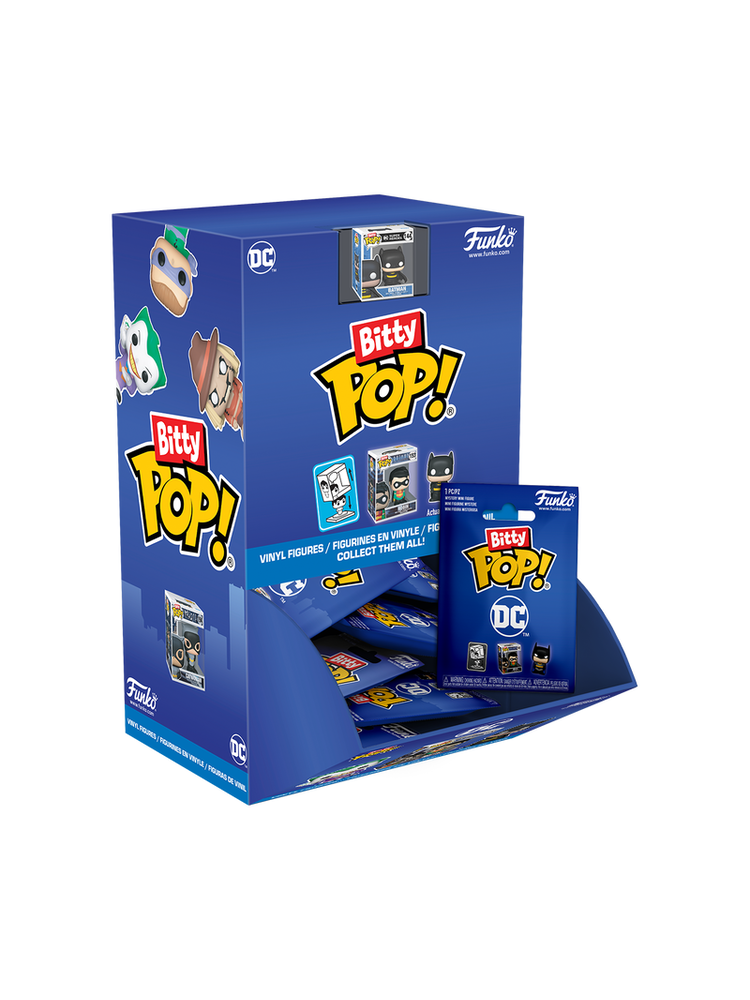 _x000D_Your favorite Pops! have been shrunk into Bitty Pops! Expand your DC collection with Bitty Pop! figures featuring your most beloved heroes and villains! Each Bitty Pop! comes in mystery packaging and includes one collectible figure. Who will you find? There’s Bitty Pop! Batman, Bitty Pop! Robin, Bitty Pop! Scarecrow, Bitty Pop! Batman, Bitty Pop! Batgirl, Bitty Pop! The Joker, Bitty Pop! Harley Quinn, Bitty Pop! The Joker, Bitty Pop! Poison Ivy, Bitty Pop! Batman, Bitty Pop! Batgirl, and Bitty Pop! The Riddler.