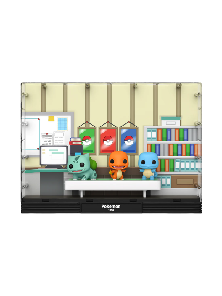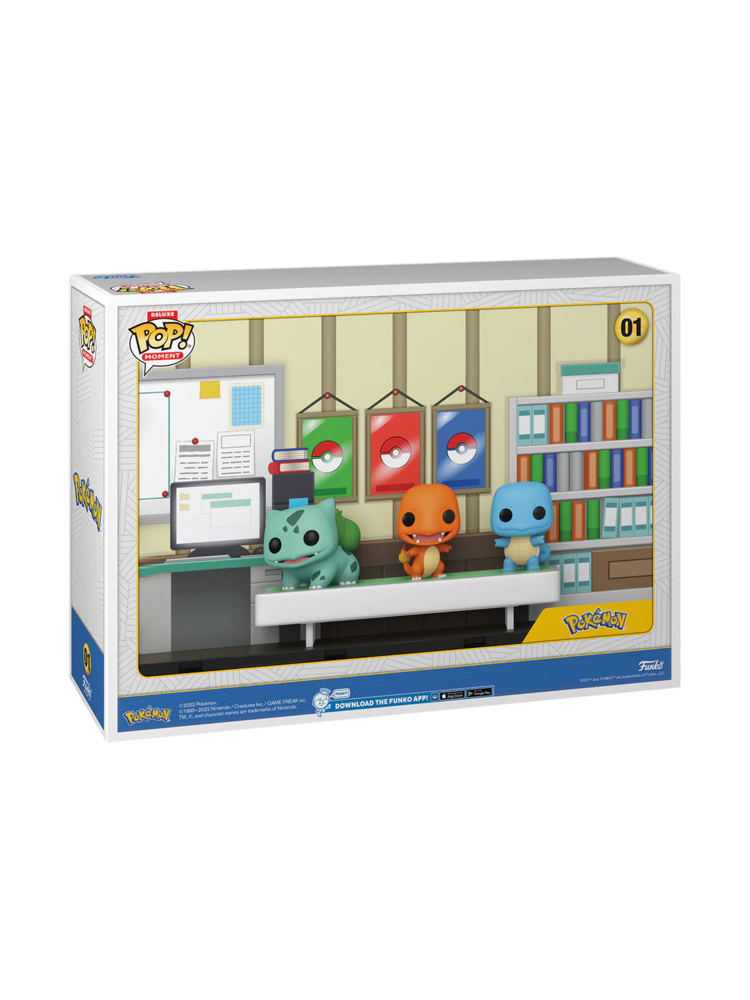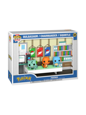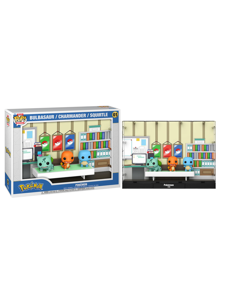 Your dream of becoming a Trainer is not out of reach! Catch this Deluxe Pop! Moment featuring Pop! Bulbasaur, Pop! Charmander, and Pop! Squirtle to add to your Pokémon collection. Pop! figures are adhered to backdrop to ensure scene integrity and ease of display.