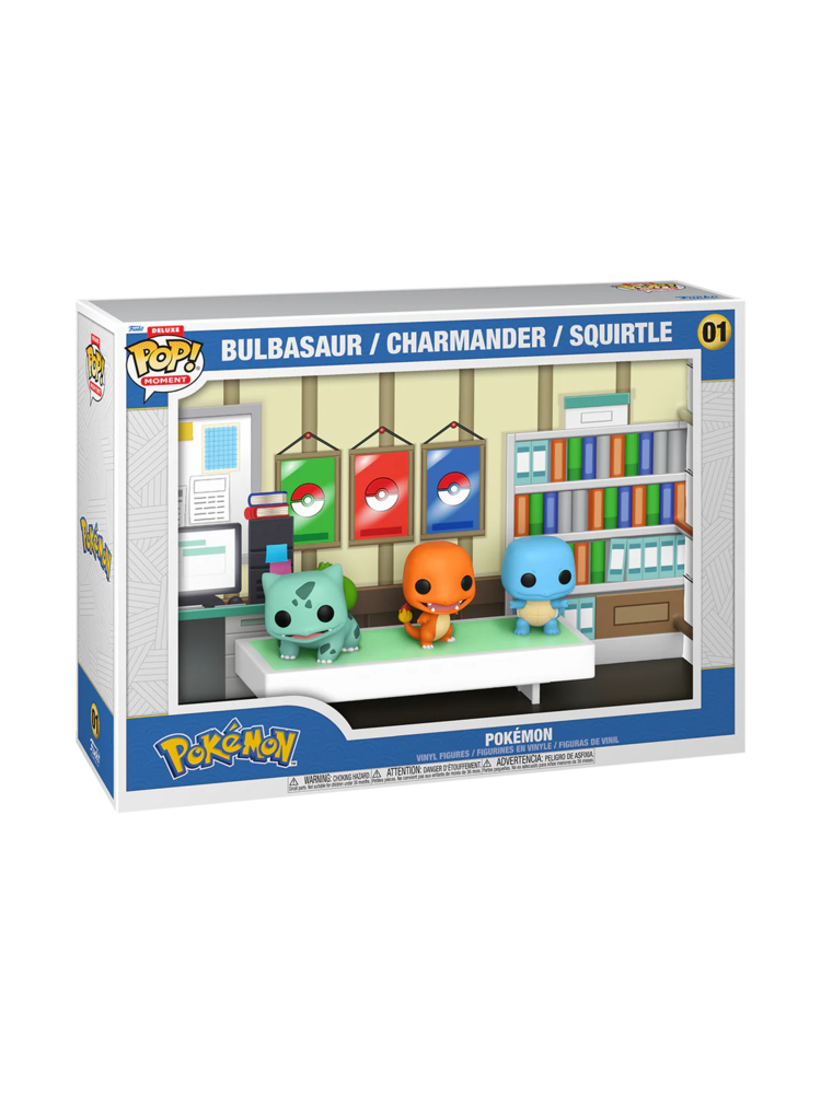 Your dream of becoming a Trainer is not out of reach! Catch this Deluxe Pop! Moment featuring Pop! Bulbasaur, Pop! Charmander, and Pop! Squirtle to add to your Pokémon collection. Pop! figures are adhered to bac