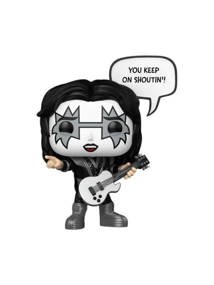 Rock and roll with KISS®! Create an unforgettable music experience in your collection when you clear the stage for POP! The Spaceman. This POP! Sayings collectible features a speech bubble that reads, “You keep on shoutin’!” Welcome KISS® to the party when you make this legendary guitarist the next headliner in your POP! Rocks lineup.