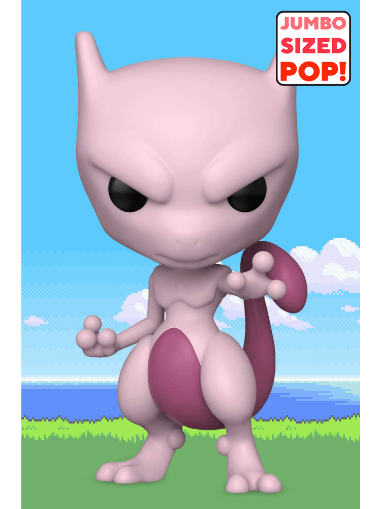Your dream of becoming a Trainer is not out of reach! Catch this Jumbo-sized Funko Pop! vinyl figure of Mewtwo to add to your Pokémon collection. Collectible stands 10 inches tall.