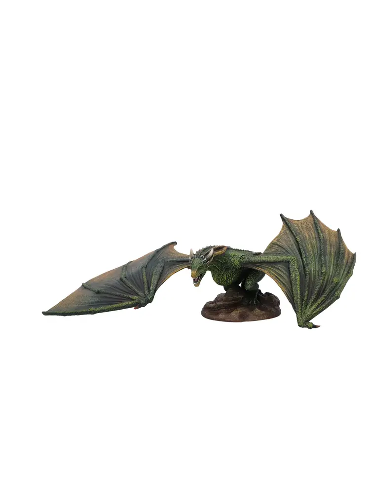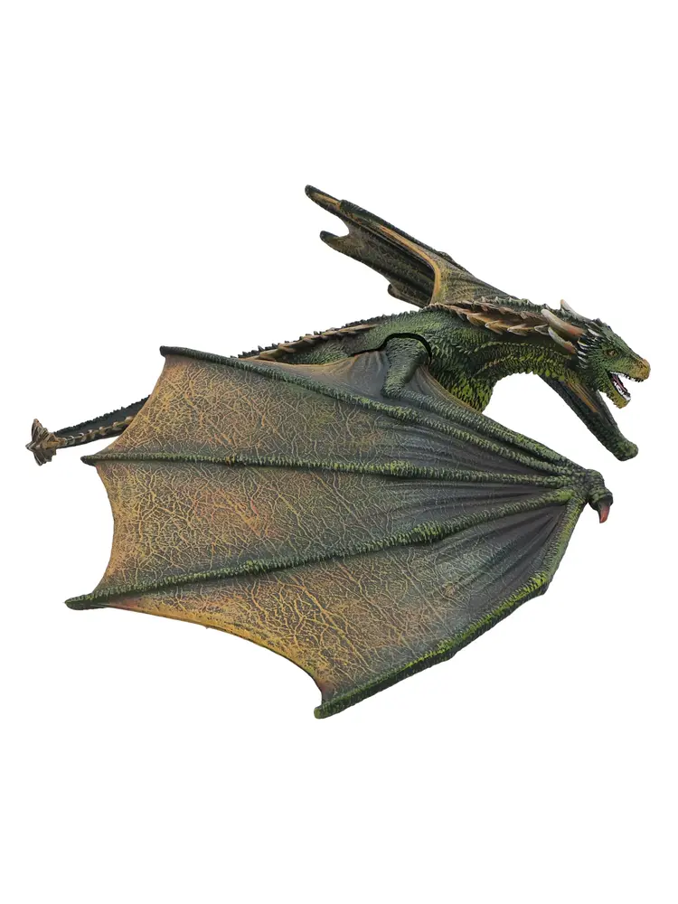 "Capture the majesty of Rhaegal with this officially licensed Game of Thrones figurine. Expertly sculpted from high-quality resin and hand-painted, this detailed collectible features Rhaegal with his head lowered, mouth closed, and wings spread wide for balance as he prowls across the ground. A striking addition to any fantasy collection.