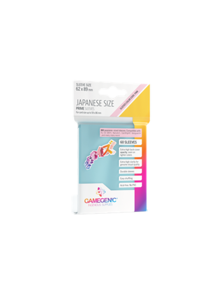 _x000D_The Japanese Size Prime Sleeves are 62 x 89 mm in size. They are ideal for card games like Yu-Gi-Oh!TM, NarutoTM, Cardfight!! VanguardTM and many others. These Japanese-Sized sleeves not only offer great protection for game cards. They also provide a great and easy shuffle feel. Because of the extra-high back-cover opacity, even in lighter colors, they are even perfect for tournaments. They also come in 12 different colors. One pack contains 60 sleeves.