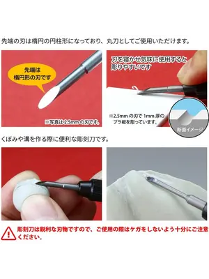 The sharp tip of the blade is also suitable for shaving off surface details of ship models.