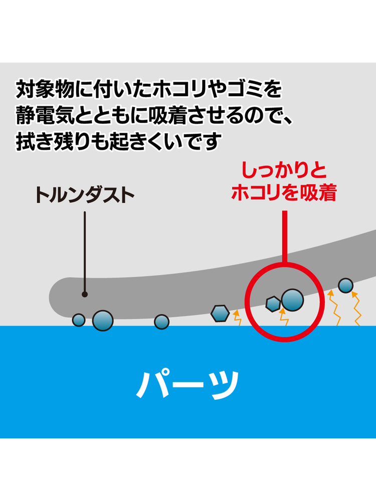 In addition, Torundust Wiper absorbs static electricity along with dust and dirt when wiping it off, so dust is less likely to reattach.