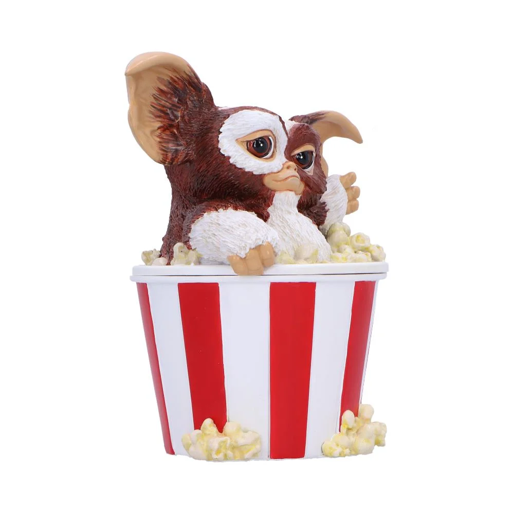 A whimsical collectible designed to resemble a classic popcorn bowl, with Gizmo playfully emerging out of the top.Featuring a removable lid that reveals a miniature cinema ticket and tiny faux popcorn pieces.Packaged in a themed, full colour display box with Gremlins branding, perfect for collectors and gifting.Ideal for Gremlins fans, retro movie lovers, collectors of novelty items, and pop culture enthusiasts.Bring a touch of 80s cinema charm to your collection with this playful popcorn box collectible.
