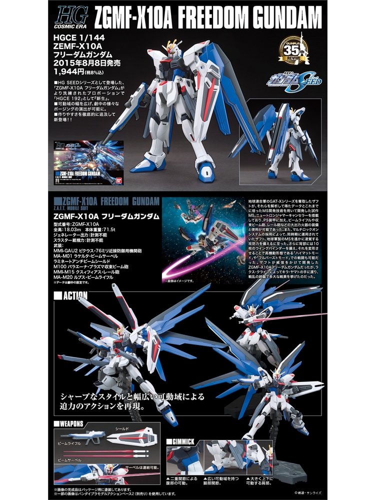 Gundam HGCE 1/144 MSG Seed ZGMF-X10A Freedom Gundam Model Kit 192