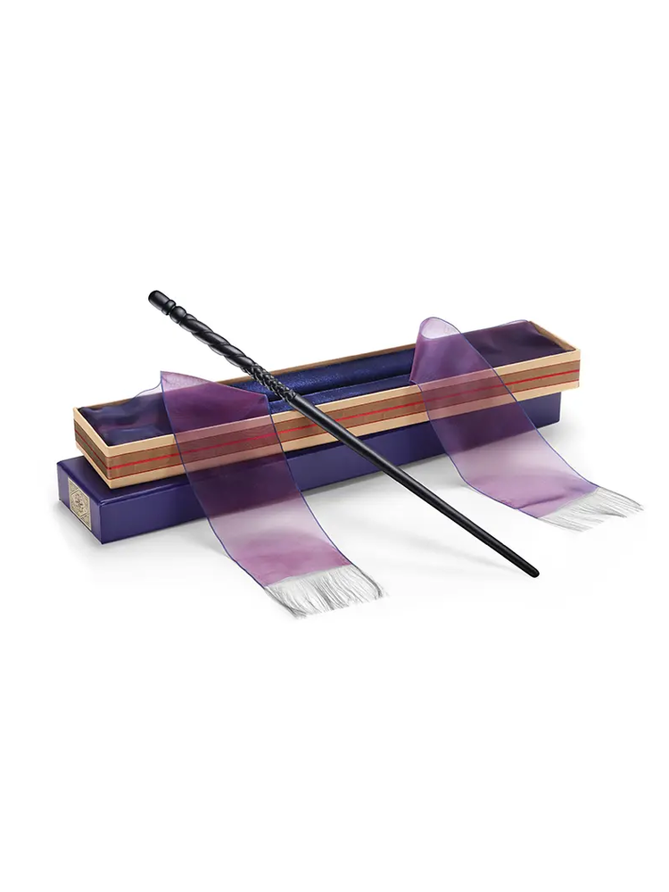 This resin wand is presented in an Ollivander collection box, with a velvet case moulded to the shape of the wand. Two veils on either side of the box c