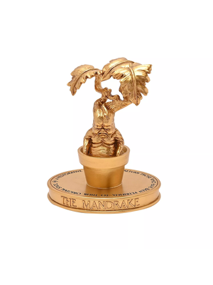 • Intricately detailed and finished in a golden hue, this Mandrake figurine is atop a base inscribed ""The Mandrake""