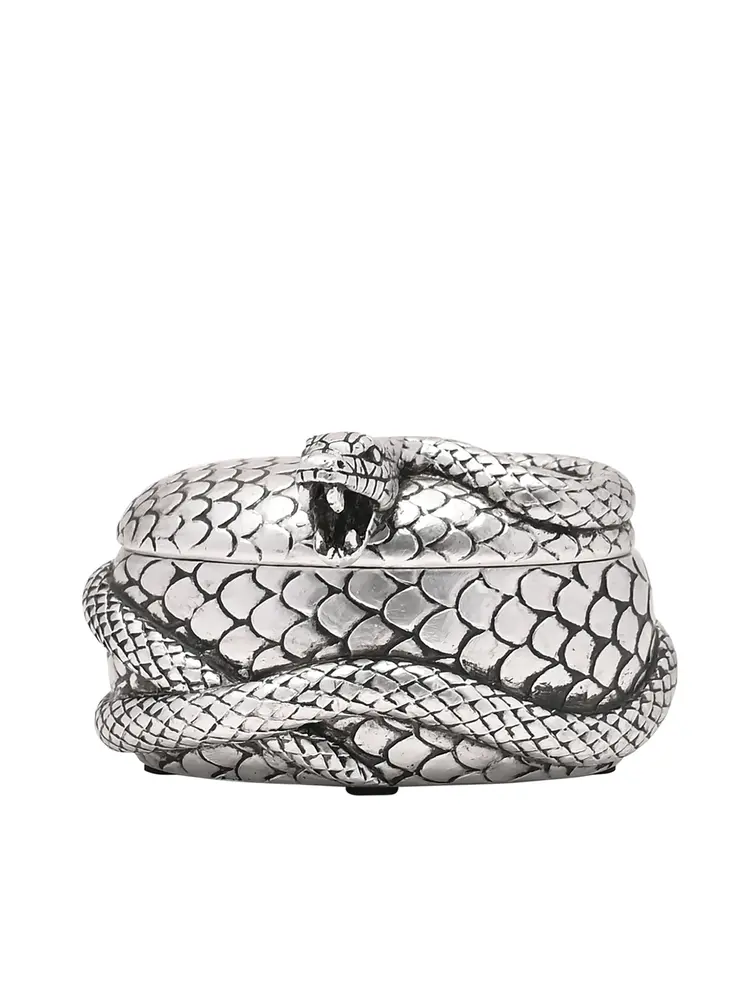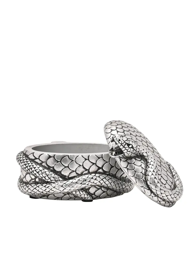 The design features Nagini, Lord Voldemort's formidable snake, elegantly wrapped around the silver-coloured trinket box.