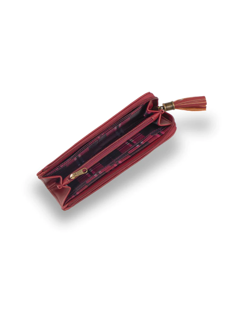 - 12 Card Slots, Centre Zipper Compartment, Domed Studs & 2 Slip Pockets