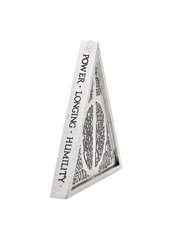 "Embark on a journey into the mystical world of Harry Potter with the Warner Bros® Harry Potter Dark Arts Triangle - Deathly Hallows. Crafted from resilient resin with a captivating shiny finish.
