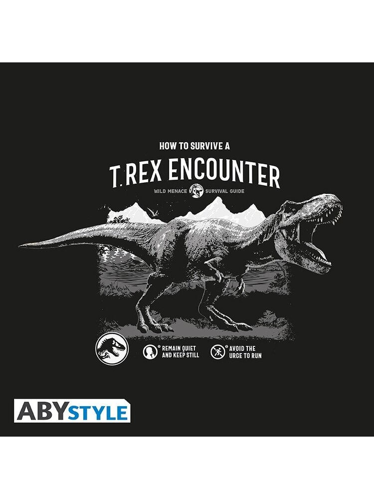 How to survive an encounter with a T-Rex? Increase your chances of survival and learn the safety rules with this beautiful t-shirt Jurassic World by ABYstyle!