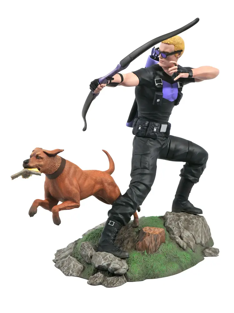 A Diamond Select Toys release! A man's best friend is his dog, and a dog's best friend is pizza! Hawkeye and his sidekick Pizza Dog spring into action in this all-new Gallery Diorama, inspired by modern Marvel Comics. Cast in high-quality PVC, this approximately 9" sculpture features detailed sculpting and paint applications and comes packaged in a full-color window box. Designed by Caesar, sculpted by Mat Brouillard.