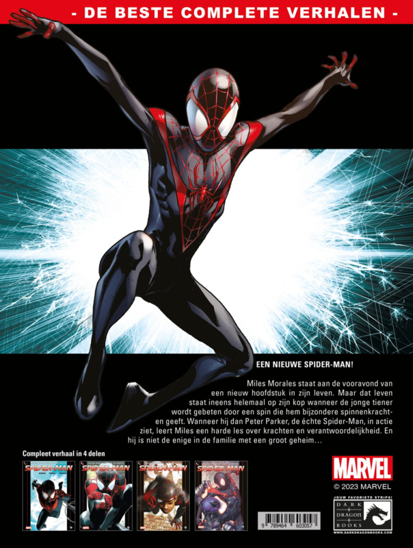 _x000D_Miles Morales staat aan de vooravond van een nieuw hoofdstuk in zijn leven. Maar dat leven staat ineens helemaal op zijn kop wanneer de jonge tiener wordt gebeten door een spin die hem bijzondere spinnenkracht- en geeft. Wanneer hij dan Peter Parker, de eÌchte Spider-Man, in actie ziet, leert Miles een harde les over krachten en verantwoordelijkheid. En hij is niet de enige in de familie met een groot geheim...