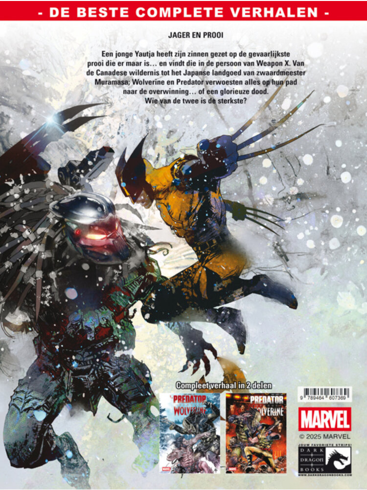 Wolverine heeft een van de langste en meest legendarische levens in de geschiedenis van Marvel Comics. Nu ontdek je een van zijn grootste, onbekende gevechten. Die tegen een Predator! Een Yautja jaagt op de ultieme prooi en vindt deze in Weapon X. Van de bloeddoorweekte sneeuw van de Canadese wildernis tot de duistere straten van Madripoor, Wolverine en een Predator vernietigen alles op hun pad in de strijd om de ultieme overwinning... of een glorieuze dood.