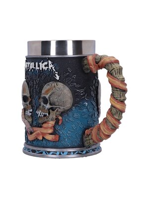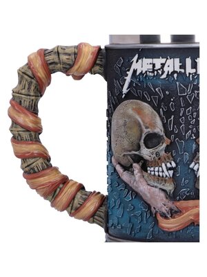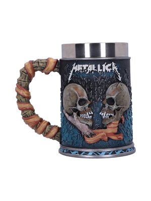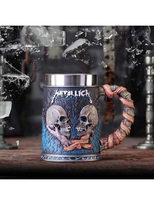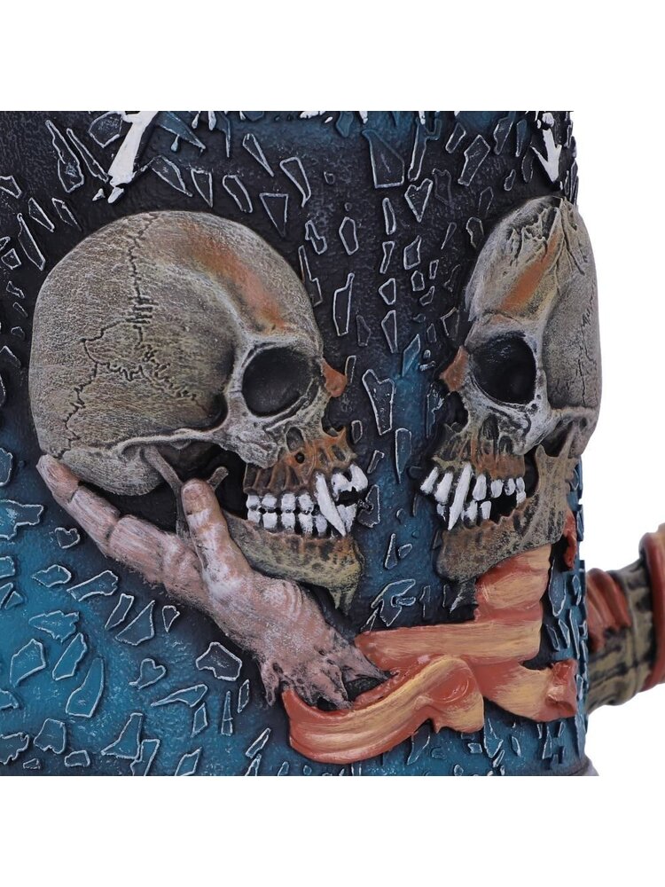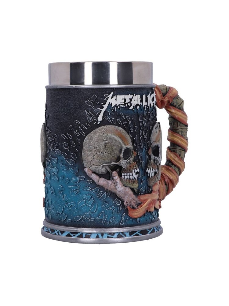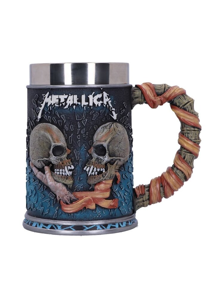 Have your favourite Metallica artwork on display at all times with this officially licensed Metallica Sad But True Tankard. The inspiration for the piece comes from the Sad but True artwork that was drawn up by their regular designer Pushead. A pair of fanged skulls face each other, one held up by a human hand, which seems to shred into pieces before becoming a stable base. The Metallica logo sits at the top of the Tankard torn, as shards of glass explode all around. Cast in the finest resin before being painstakingly hand-painted, this piece is the perfect way to pay homage to one the most influential heavy metal bands of all time!