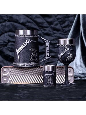 Have your favourite Metallica album artwork on display at all times with this exquisite goblet from alternative brand Nemesis Now! Featuring the understated artwork from their self-titled fifth studio album, the Metallica logo sits above a coiled snake on a black background. The 'M' from the logo is mirrored in the foot of the goblet stem, which is cast in the finest resin before being expertly hand-painted. This piece comes with a removable stainless steel insert and is the perfect way to pay homage to one of the most influential heavy metal bands of all time!