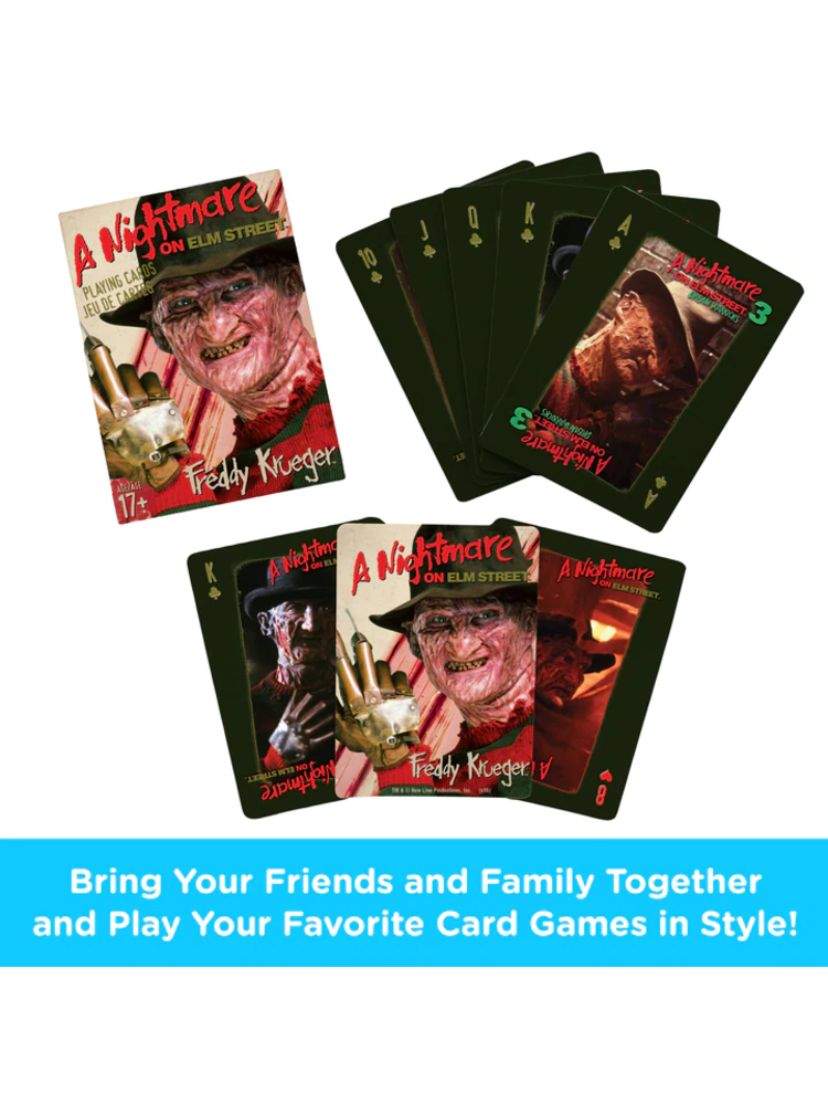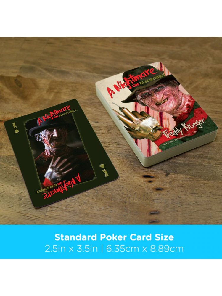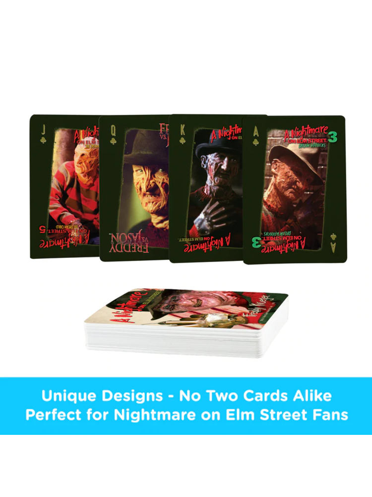 DECK OF PLAYING CARDS: Play your favorite card games with Friends and Family and dream of Freddy Krueger with this official deck of a Nightmare on Elm Street playing cards