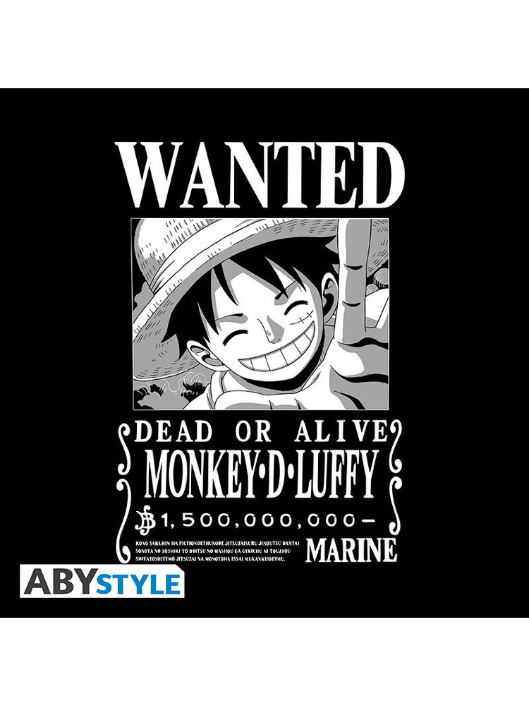 Beoordeel One Piece Unisex Black T-Shirt Wanted Luffy BW Size XL
