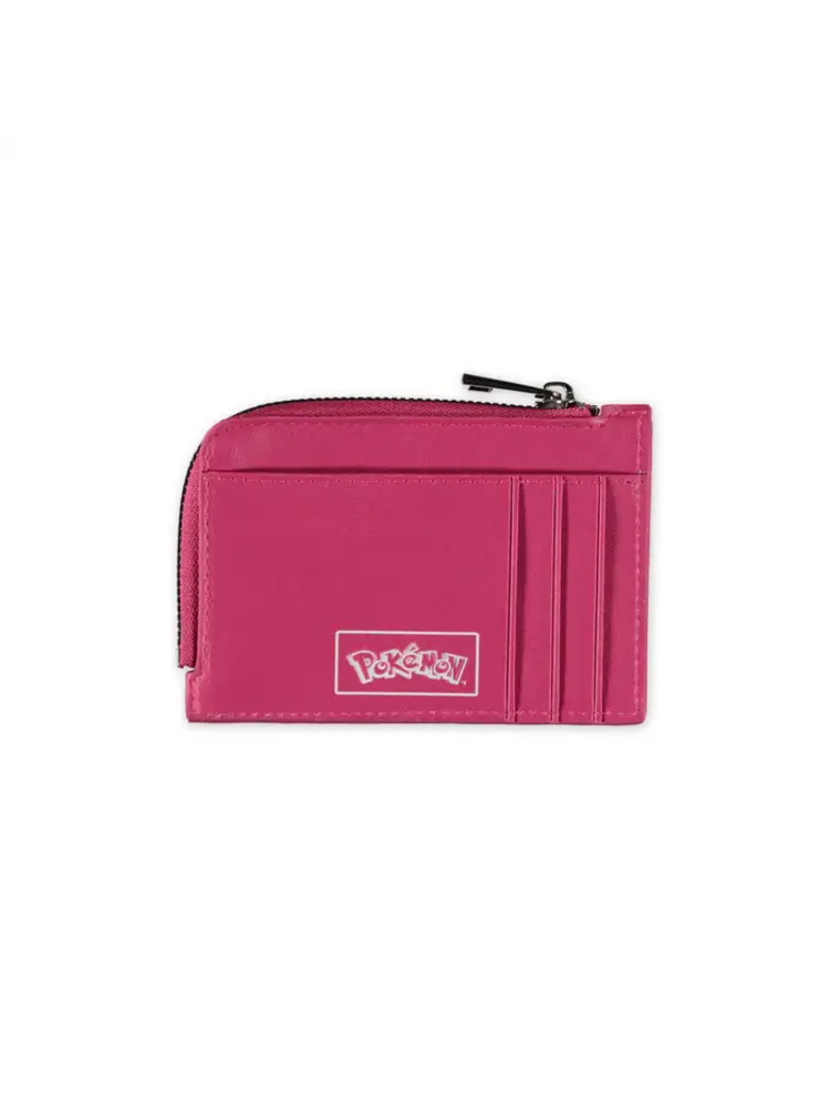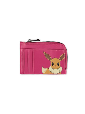 Bring the charm of Eevee to your everyday essentials with this Pokémon card holder, a must-have for any Pokémon fan. Featuring screen-printed and debossed artwork of Eevee on one side and the official Pokémon logo on the other, this all-around zippered card holder blends iconic design with everyday practicality. Built for secure storage, it includes six card slots, two cash sleeves, and a zippered main compartment for coins or small necessities—making it the perfect Pokémon merch accessory for fans on the go.