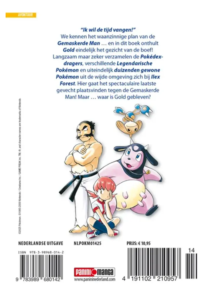 We kennen het waanzinnige plan van de Gemaskerde Man ... en in dit boek onthult Gold eindelijk het gezicht van de boef! Langzaam maar zeker verzamelen de Pokédex- dragers, verschillende Legendarische Pokémon en uiteindelijk duizenden gewone Pokémon uit de wijde omgeving zich bij Ilex Forest. Hier gaat het spectaculaire laatste gevecht plaatsvinden tegen de Gemaskerde Man! Maar ... waar is Gold gebleven?