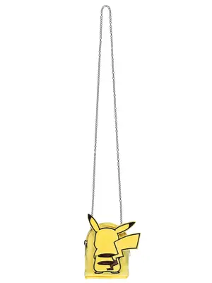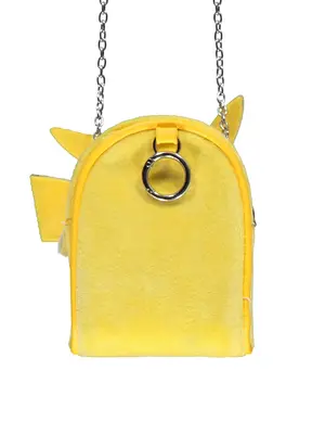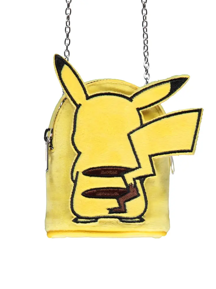 Show off your love for Pikachu with this Pokémon micro bag in plush! Features a cute Pikachu patch with ears and tail that shows his iconic tail-end, a zippered compartment, detachable silver shoulder chain, and a crocodile hook for easy attachment as a charm to another bag. The shoulder chain can be easily tucked into the bag for this purpose. Perfect for small items and stylish outings.
