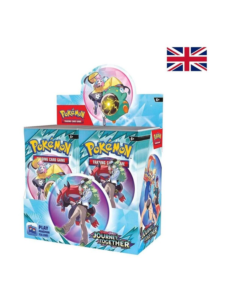 Trainer's Pokémon Break into Battle! With deep trust and steady guidance, Trainers help bring out the best in their Pokémon. The bond they share empowers them to act as one in battle as they push their strength to the limit, including as Pokémon ex! Team up with N's Zoroark ex, Iono's Bellibolt ex, Lillie's Clefairy ex, Hop's Zacian ex, and more Trainer's Pokémon, and discover the unstoppable power of friendship in the Pokémon TCG: Scarlet & Violet-Journey Together expansion! Journey Together includes: Over 180 cards 4 Trainer's Pokémon ex More than 40 Trainer's Pokémon 16 Pokémon ex 11 illustration rare Pokémon 6 special illustration rare Pokémon 3 hyper rare gold etched cards More than 30 Pokémon and Trainer cards with special illustrations