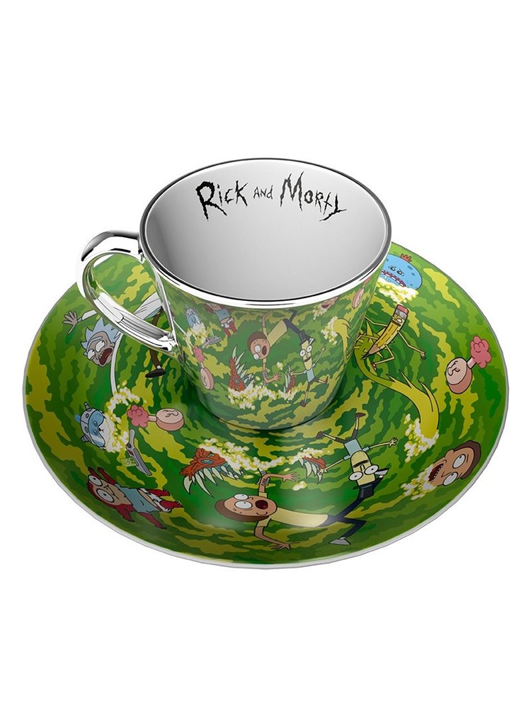 Dive into the whirlwind of Rick & Morty adventures with this mirrored coffee cup and saucer set by GB Eye.