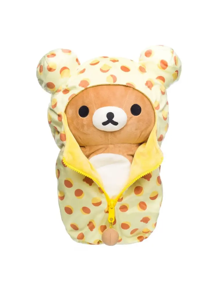 This ultra cute San-X Original Rilakkuma plush is the perfect bedtime companion, snuggled in a removable soft yellow acorn pattern sleeping bag is ready for all your cuddles!