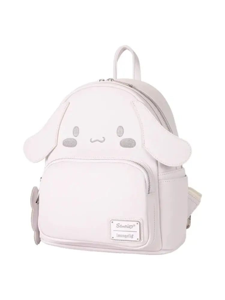 Soaring in for a landing at Café Cinnamon? You’ll definitely want to bring along this charming Cinnamorol mini backpack. Cinnamoroll’s signature pastel white colour, along with textured faux leather, make this accessory an elegant stand-out. Appliques of his floppy ears add a touch of character—and Mr. Bird tags along as a faux leather charm. Pack just what you need for a day with friends, sharing smiles wherever you go.