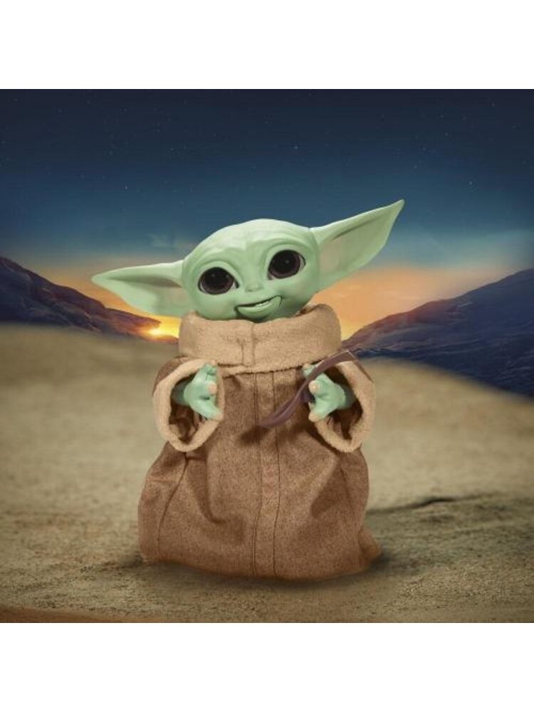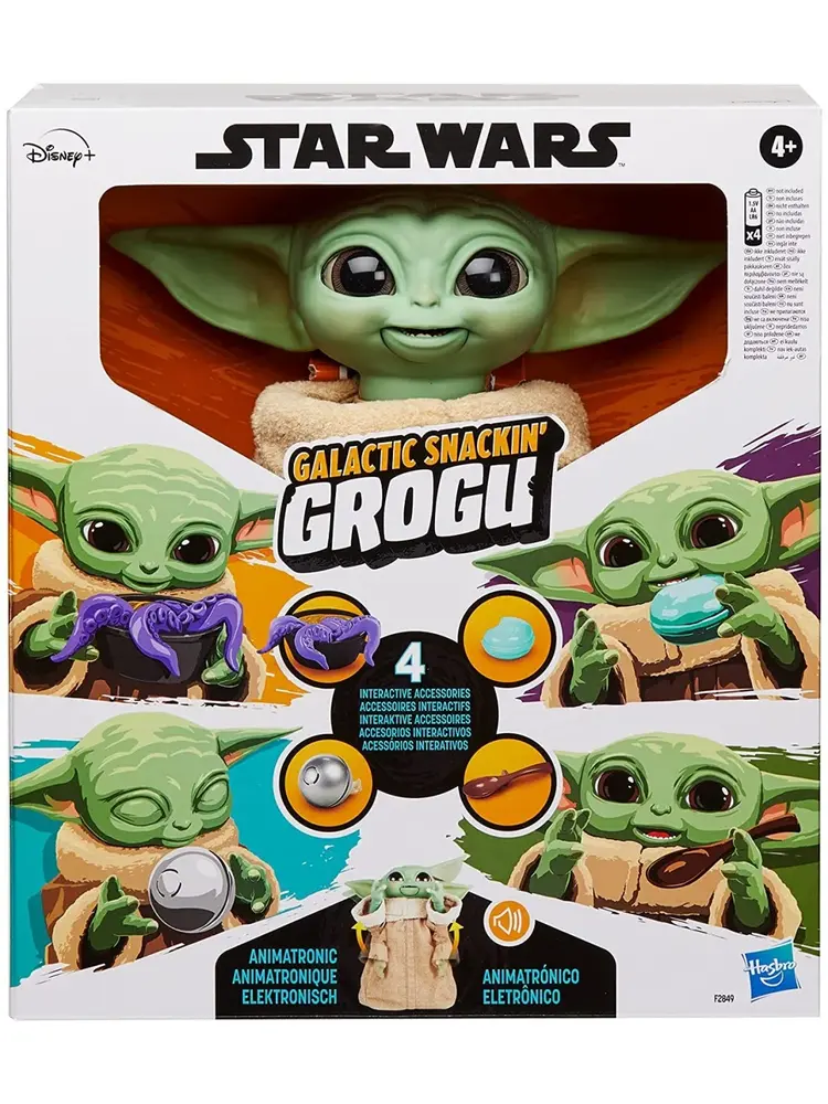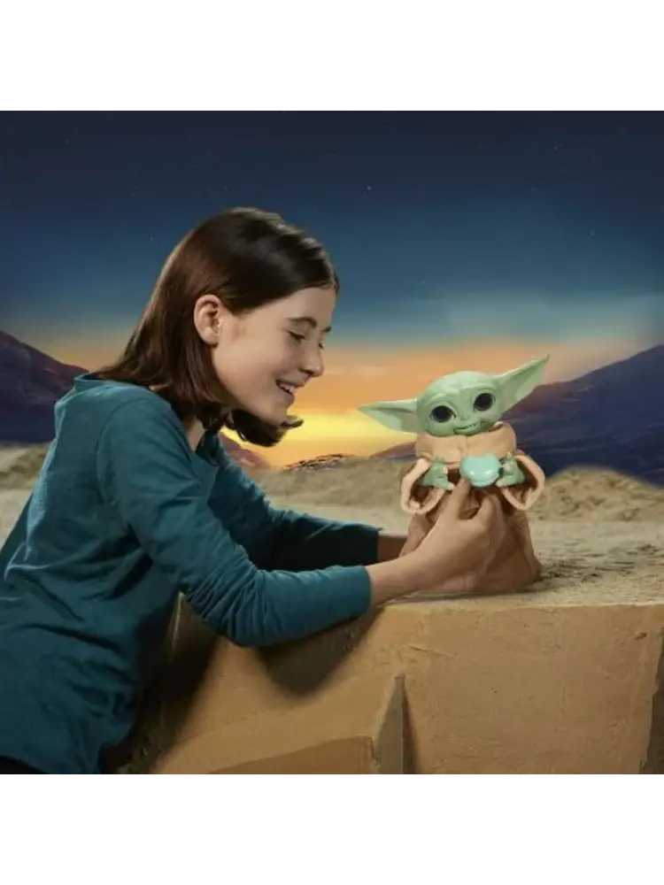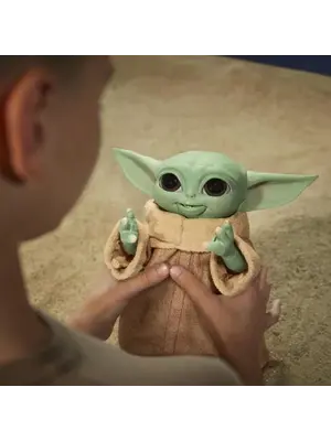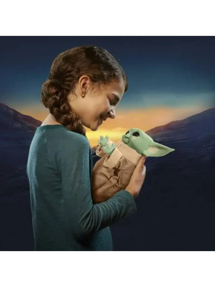 Grogu (The Child), affectionately known to fans as "baby Yoda," is craving a fun snack using the Force. Including a galaxy of features, including adorable sounds, fun animated movements and interactive accessories, this animatronic toy is ready for action and adventure! Simply place one of the included series-inspired accessories in Grogu's hand and he'll respond. When an accessory is placed in his mouth, he makes sounds that let you know if he likes his snack or not. When Grogu (L'Enfant) wants to be held, he holds out both arms. And with a Force activation feature, Grogu's snack toy pretends to channel the Force with both hands, just like in the second season of The Mandalorian series on Diney+. The toy also includes sounds inspired by the series, a quality soft fabric tunic, articulated head, ears and arms, and blinking eyes.